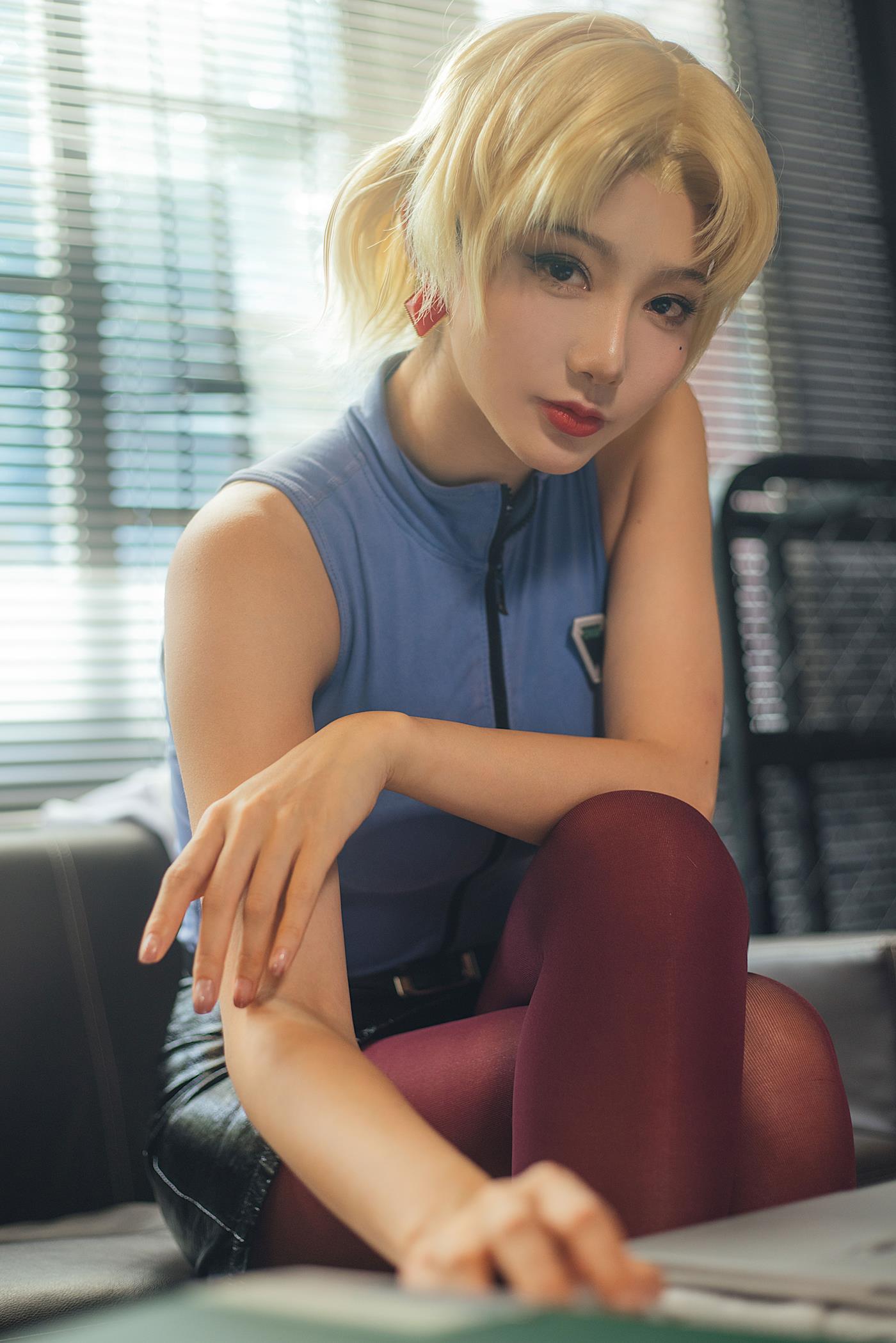 整组写真以冷色调为主,搭配适当的暖色光源,营造出一种神秘而充满张力的氛围。摄影师在场景设计上也下足了功夫,无论是背景的建筑布局还是道具的选择,都显得独具匠心。这种对细节的极致追求,使得每一张图片都能独立成为一幅精美的艺术作品。