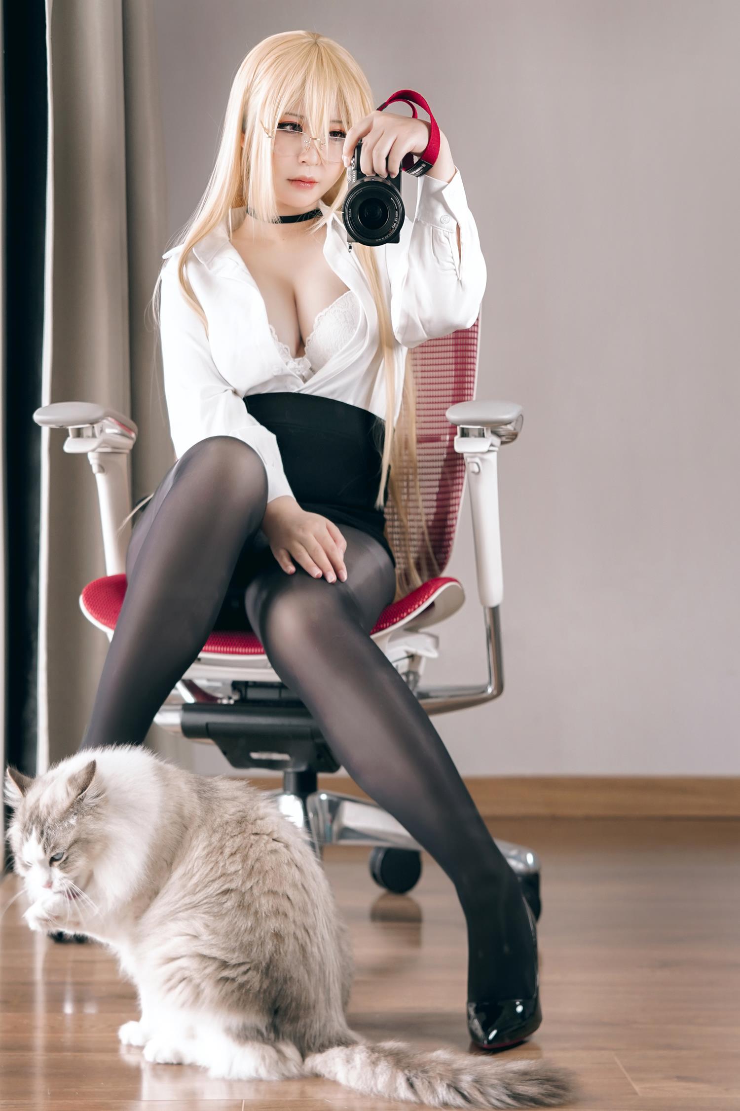 除了角色还原度高外,这组作品在场景布设上也下足了功夫。无论是办公环境的搭建,还是背景道具的选择,都体现了COSER对细节的极致追求。通过精心设计的场景和光影效果,成功营造出符合角色身份的独特氛围。特别是那些富有创意的构图与光线运用,让整组作品更具艺术性和观赏性。