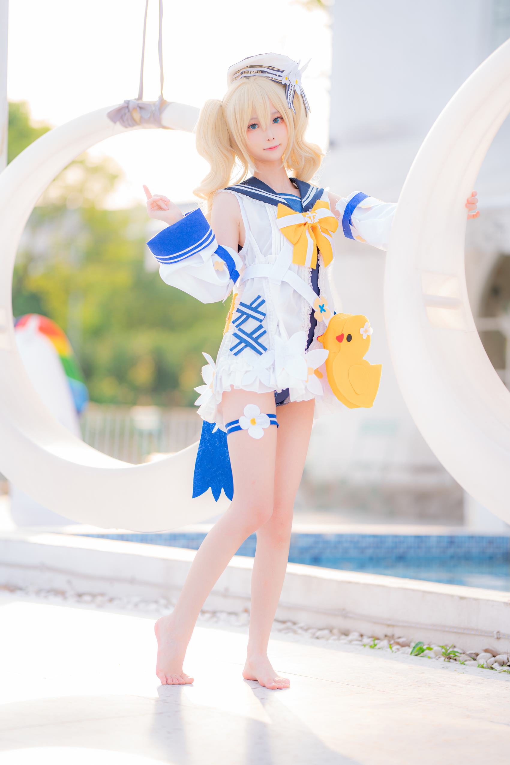 此外,坂坂白还特别注意捕捉芭芭拉的表情和动作。无论是甜美的微笑,还是活泼的跳跃姿势,每一个瞬间都被定格在照片中,展现了这个角色的独特魅力。