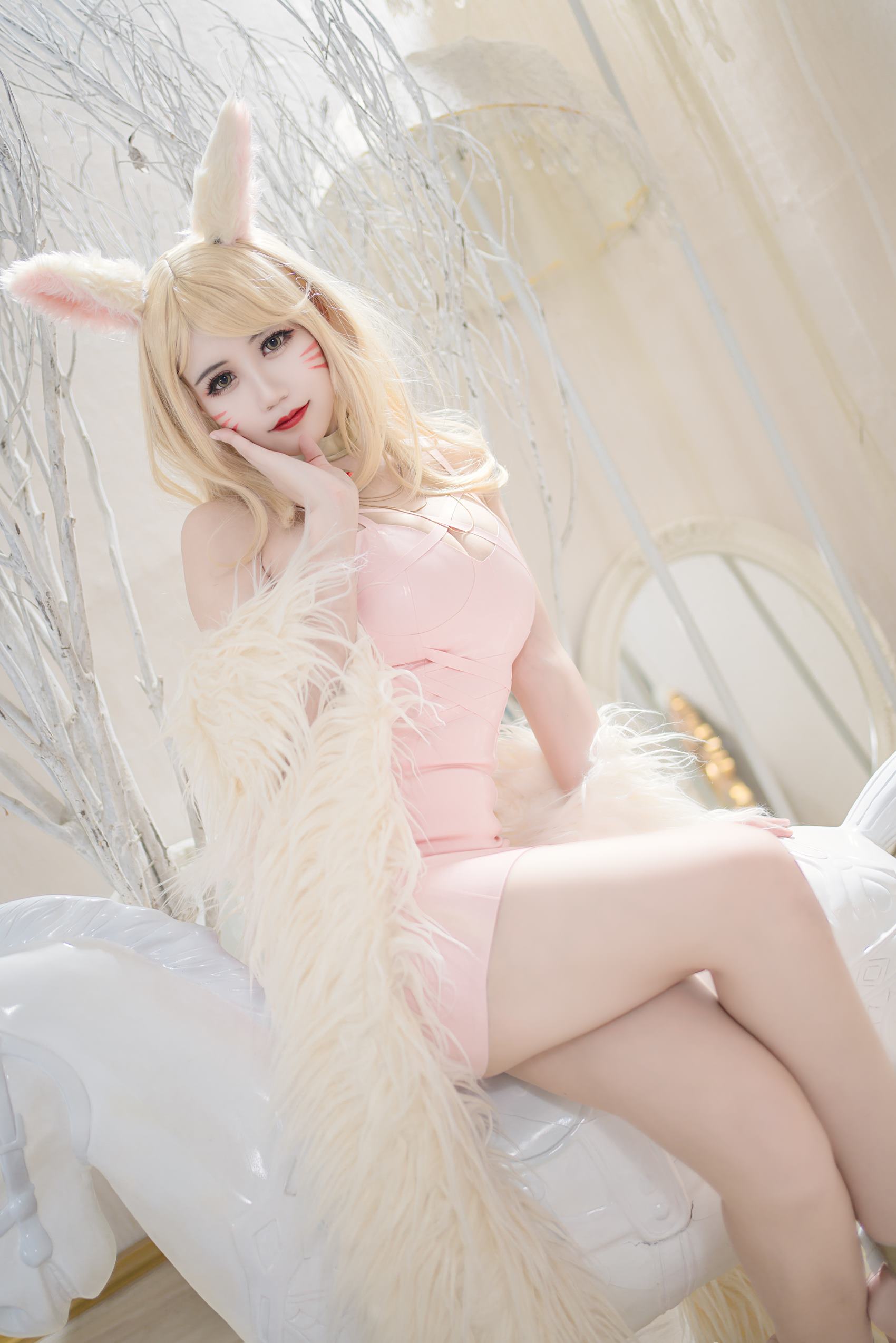 作为《英雄联盟》中的灵魂人物之一,阿狸以其独特的技能设计和性感的外观在玩家中拥有大量粉丝。小仓千代在这次cosplay中,不仅完美还原了阿狸的经典造型,更通过细节的处理将角色的灵魂展现得淋漓尽致。从服装材质的选择到妆容的精致打造,每一个环节都体现了她对角色的深刻理解与尊重。