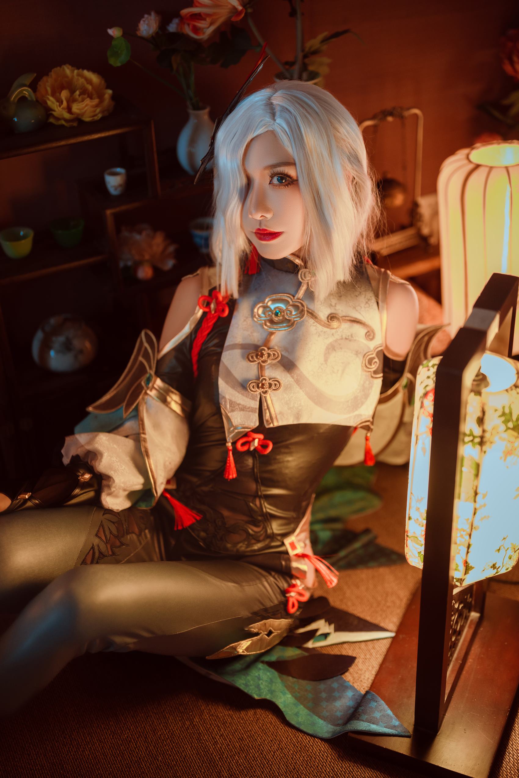 在此次图集中,源纱希对申鹤的还原堪称完美。从精心制作的服饰到精致的妆容,每一个细节都展现了她对角色的高度尊重和深刻理解。服装设计上,源纱希选择了符合申鹤设定的材质与颜色搭配,既保留了角色原有的风格,又加入了一些独特的创新元素。