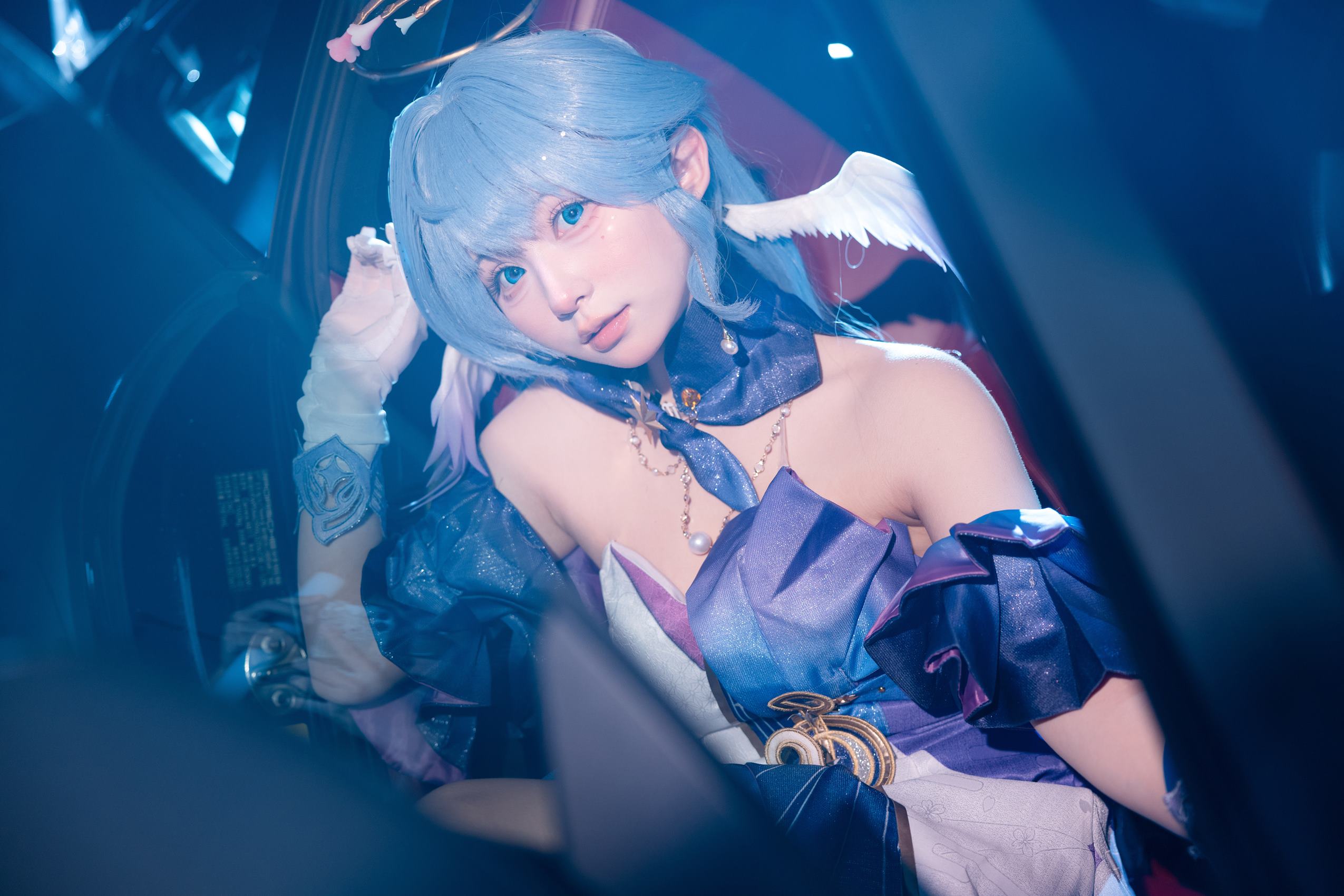 从造型设计来看,花铃选择了一袭以蓝色为主调的服装,搭配羽毛元素的装饰,完美契合了知更鸟的特质。她的每一个动作、表情都透露出一种静谧而优雅的气质,仿佛让人置身于一个充满魔法与神秘的世界。