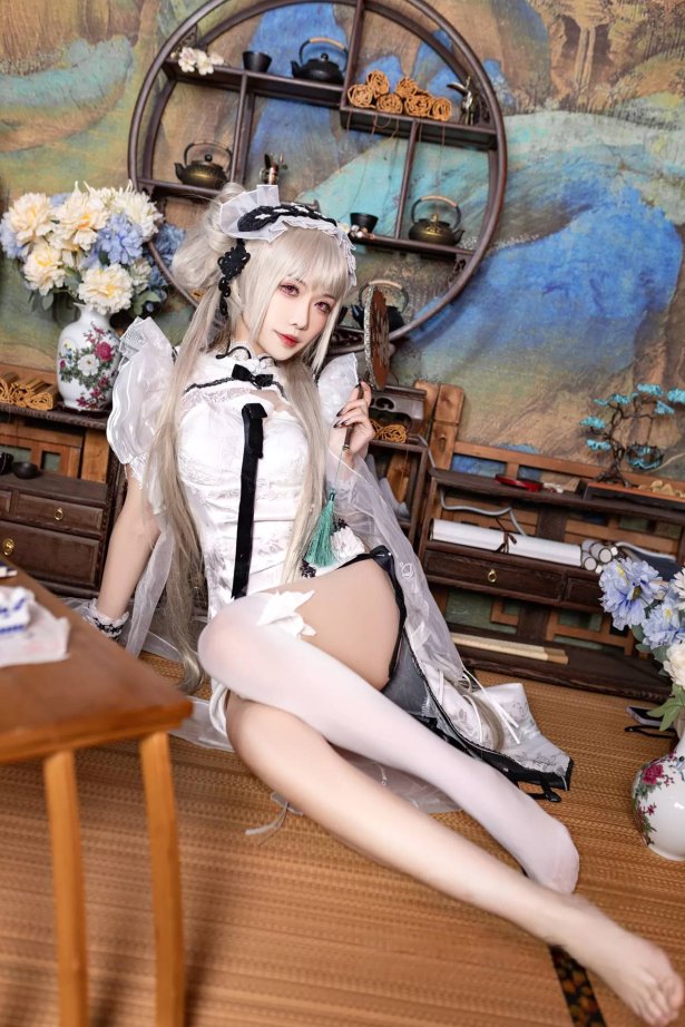 在这组写真中,Coser对源纱希的服装进行了精心的设计。源纱希作为《碧蓝航线》中的角色,以她标志性的旗袍造型和优雅的姿态深受玩家喜爱。图集中,每一套服装都严格参考了原作设定,从布料的质感到颜色搭配,都展现了极高的还原度。