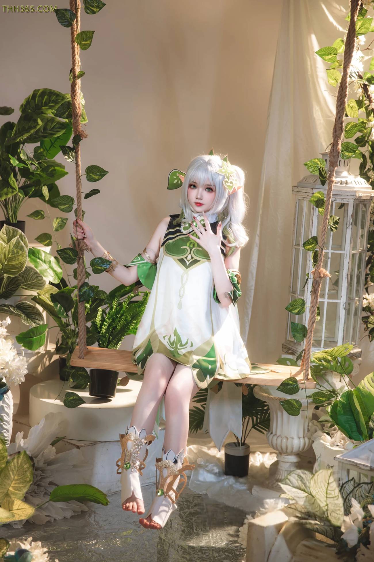 在《原神》这款开放世界游戏中,纳西妲是一位备受玩家喜爱的角色。她不仅是草元素的化身,更是蒙德城中温柔而坚定的存在。她的形象融合了自然与神秘的元素,既有少女的纯真,又有领袖的责任感。雪晴Astra在这次COS拍摄中,精准地捕捉到了纳西妲的独特气质,为粉丝们呈现了一场视觉盛宴。