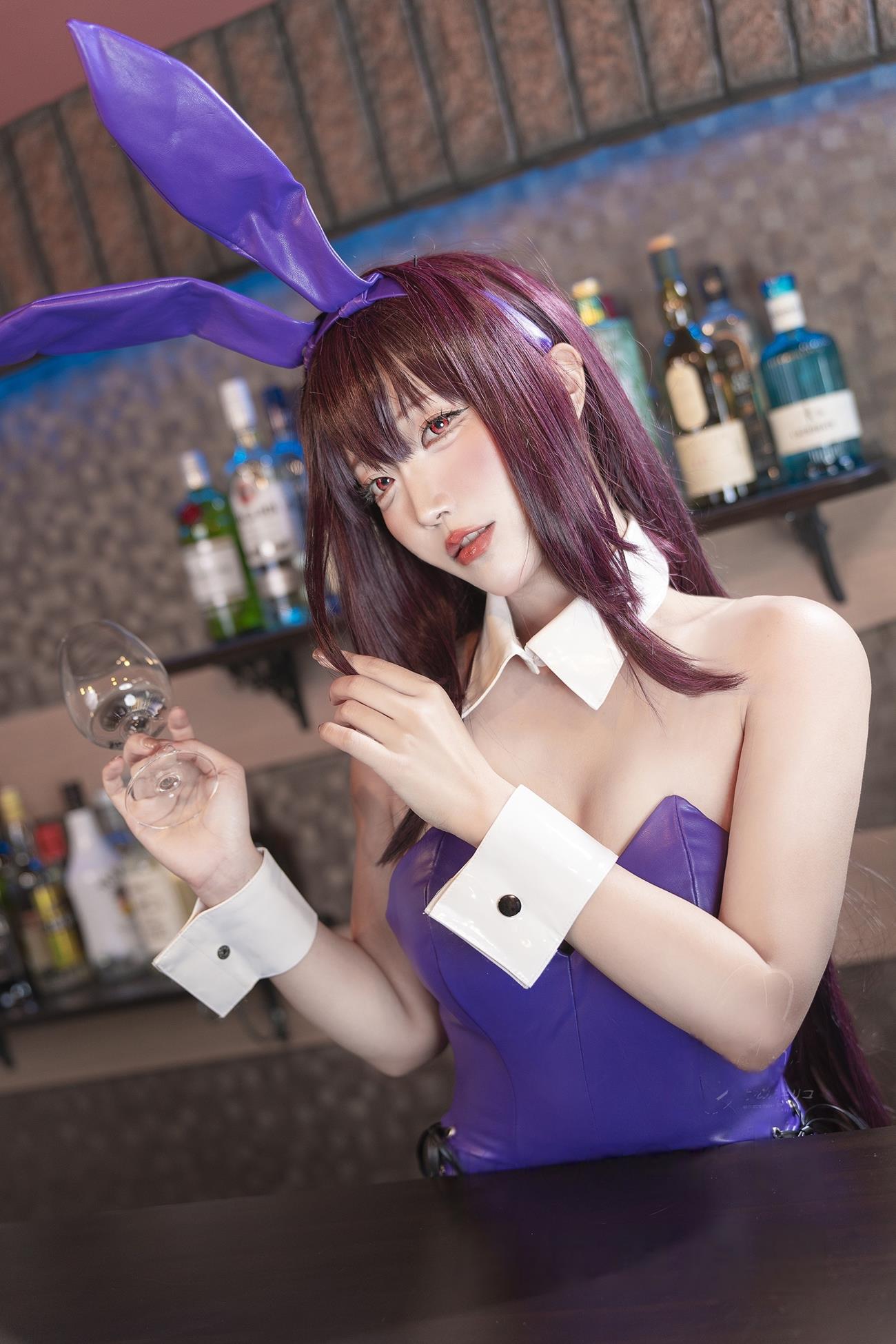 斯卡哈兔女郎这一主题的设计灵感来源于游戏《Fate/stay night》中的角色斯卡哈·C·v·诺恩。她不仅是一位强大的魔法师,还以她的兔子随从而闻名。在这次图集中,切切celia通过精美的服装设计和细致的妆容,完美还原了斯卡哈兔女郎的独特魅力。