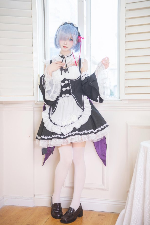 cosplay的核心在于还原角色的经典形象,而Shika小鹿鹿在这组作品中展现了她对细节的极致追求。蕾姆的服装设计既保留了原作中的经典元素,又加入了许多创新的细节,使整个造型更加立体和生动。