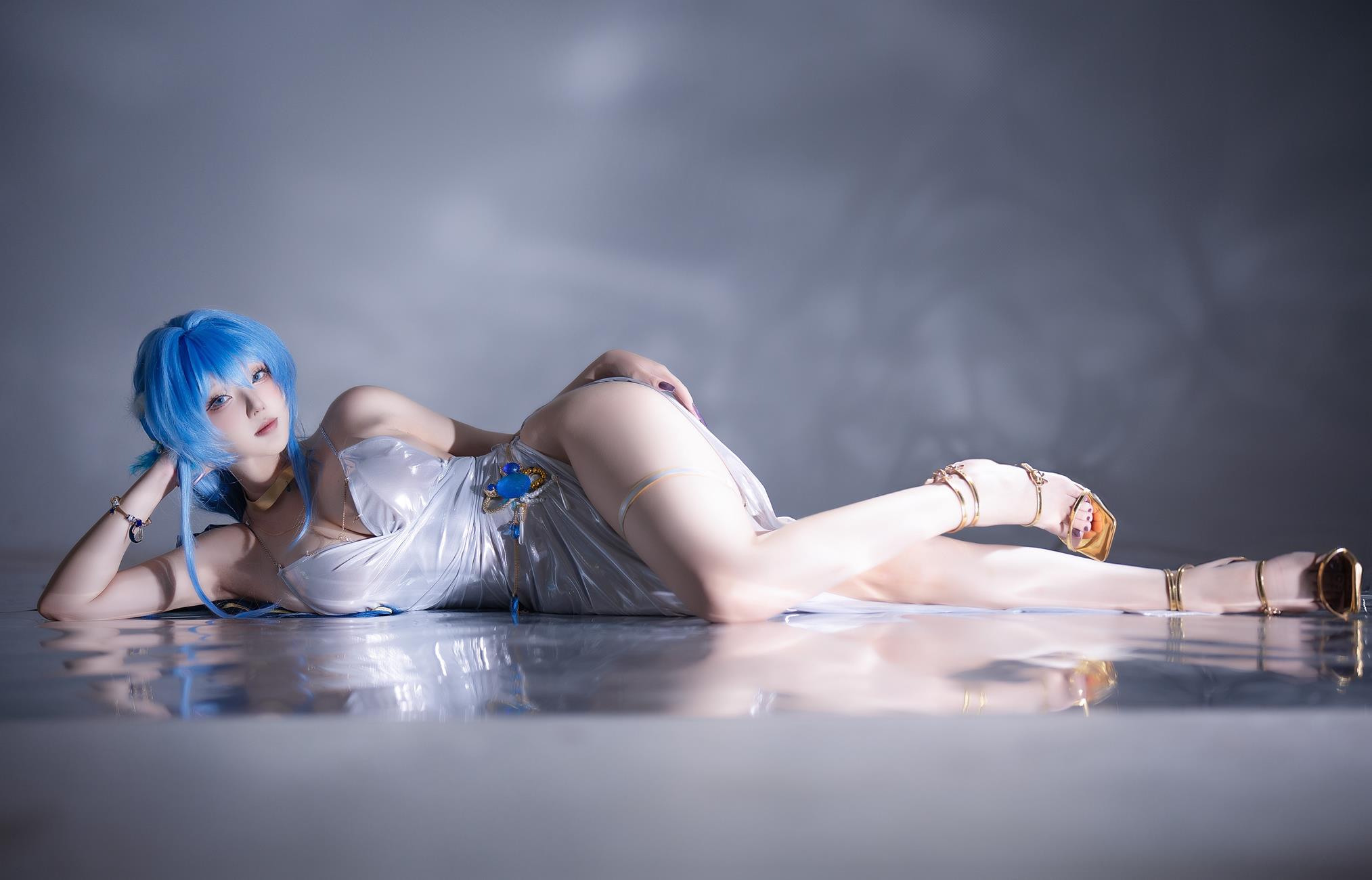 在这组写真中,菌烨tako选择了经典的海伦礼服造型。海伦作为希腊神话中的重要角色,她的形象充满了神秘感和戏剧性。菌烨tako通过精致的服装、妆容以及表情管理,将这一角色的魅力展现得淋漓尽致。