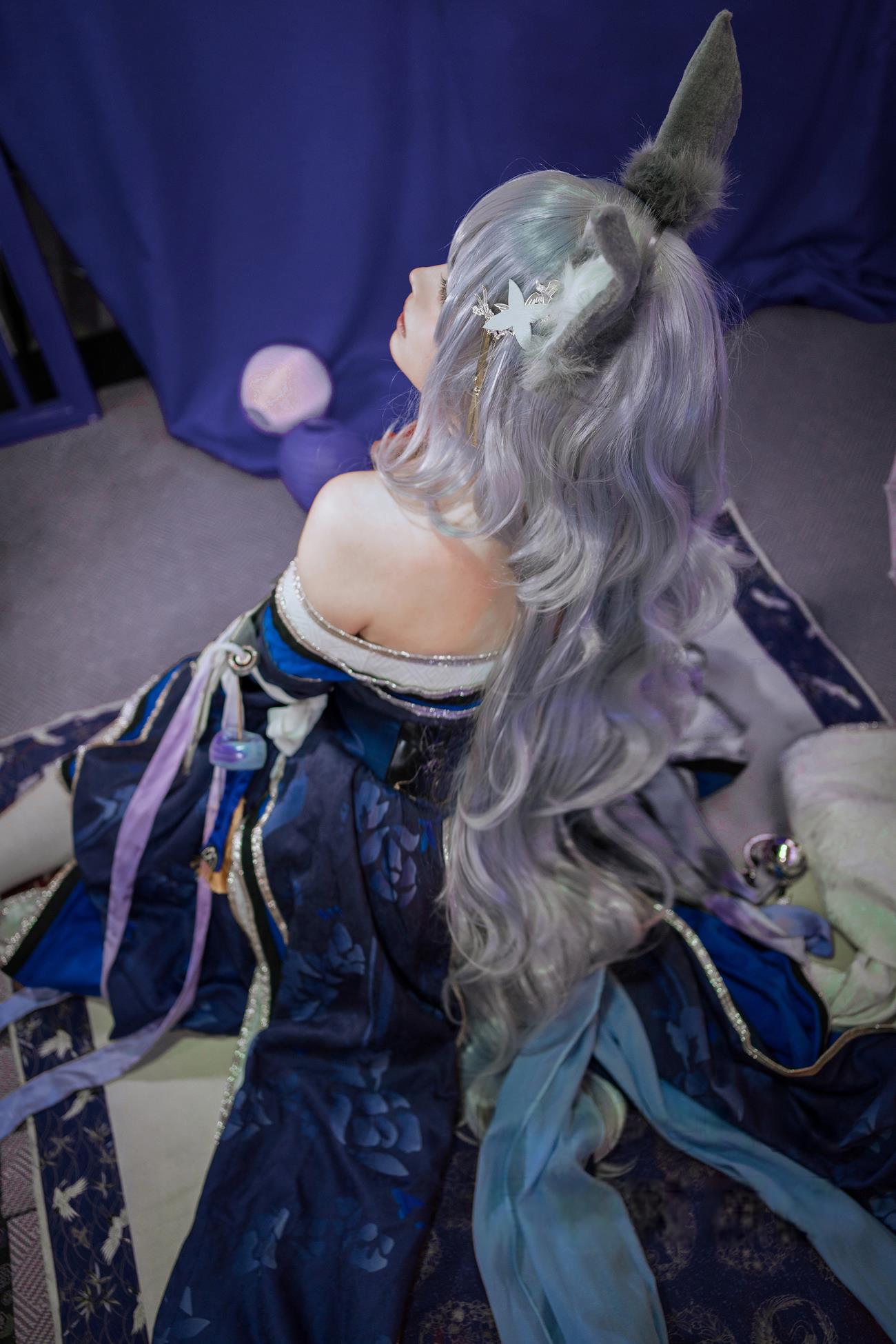 在这组写真中,“阿半”将《碧蓝航线》中的角色“信浓”栩栩如生地展现在镜头前。作为日本海军的“信浓”号战舰,她的造型以深蓝色为主色调,搭配白色装甲和金色装饰,整体风格既威严又优雅。阿半通过精致的服装制作、妆容设计以及场景布置,完美还原了角色的经典形象。