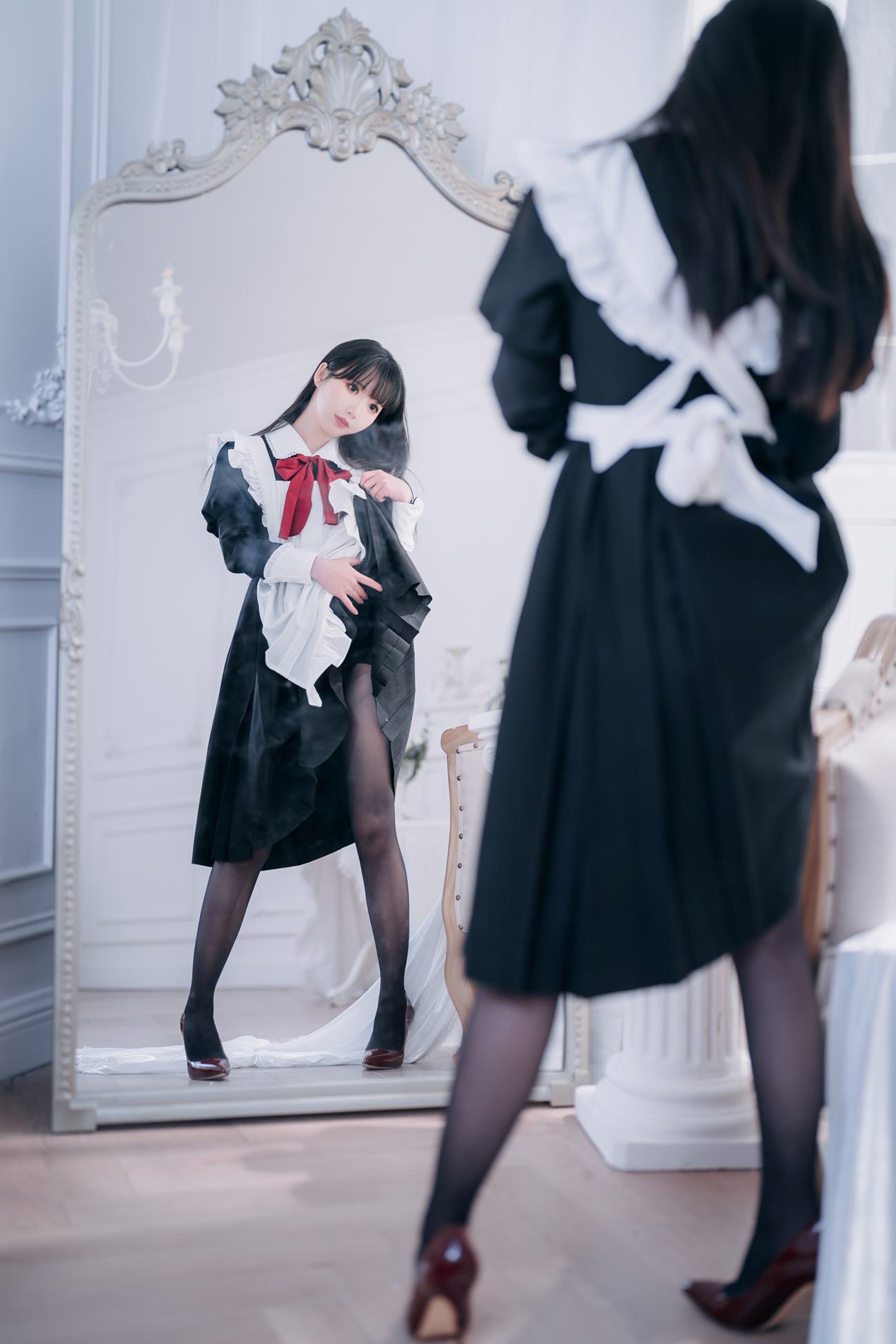 面饼仙儿写真cos图集赏析:红高跟女仆的优雅与魅力