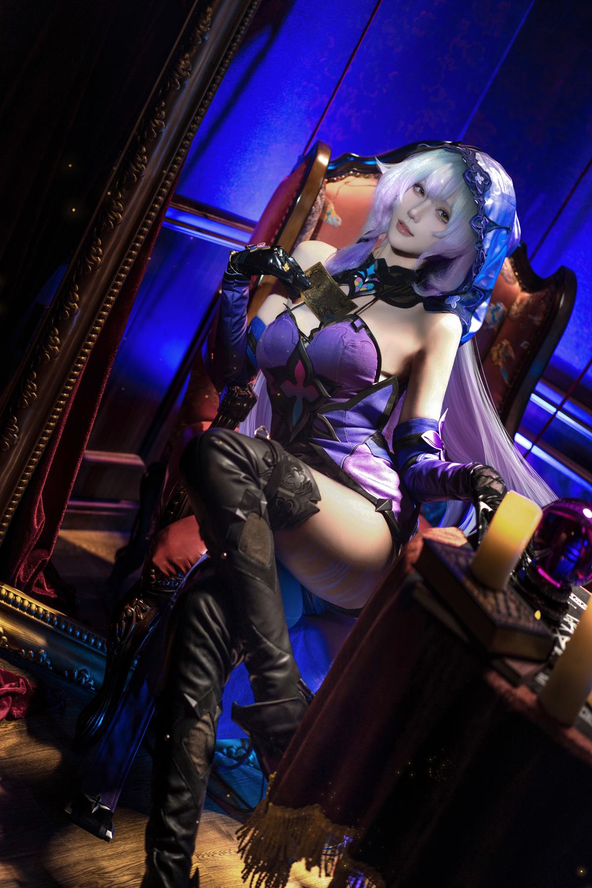 这组图集中,花兮_honoka扮演的角色是《崩坏》系列中的“舰长”,并融入了“黑天鹅”的元素。从整体风格来看,这套作品延续了她一贯的精致与优雅,同时注入了一丝神秘与高贵的气息。背景设计、服装造型以及光影效果都经过精心策划,展现出角色的独特魅力。