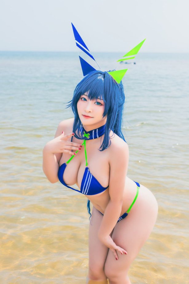 这组写真在细节处理上堪称精细。无论是服装的褶皱、光影的变化,还是背景的花叶装饰,都展现了摄影师和COSER对每一个细节的极致追求。尤其是泳装材质的质感表现,让人仿佛能触摸到布料的细腻与清凉。